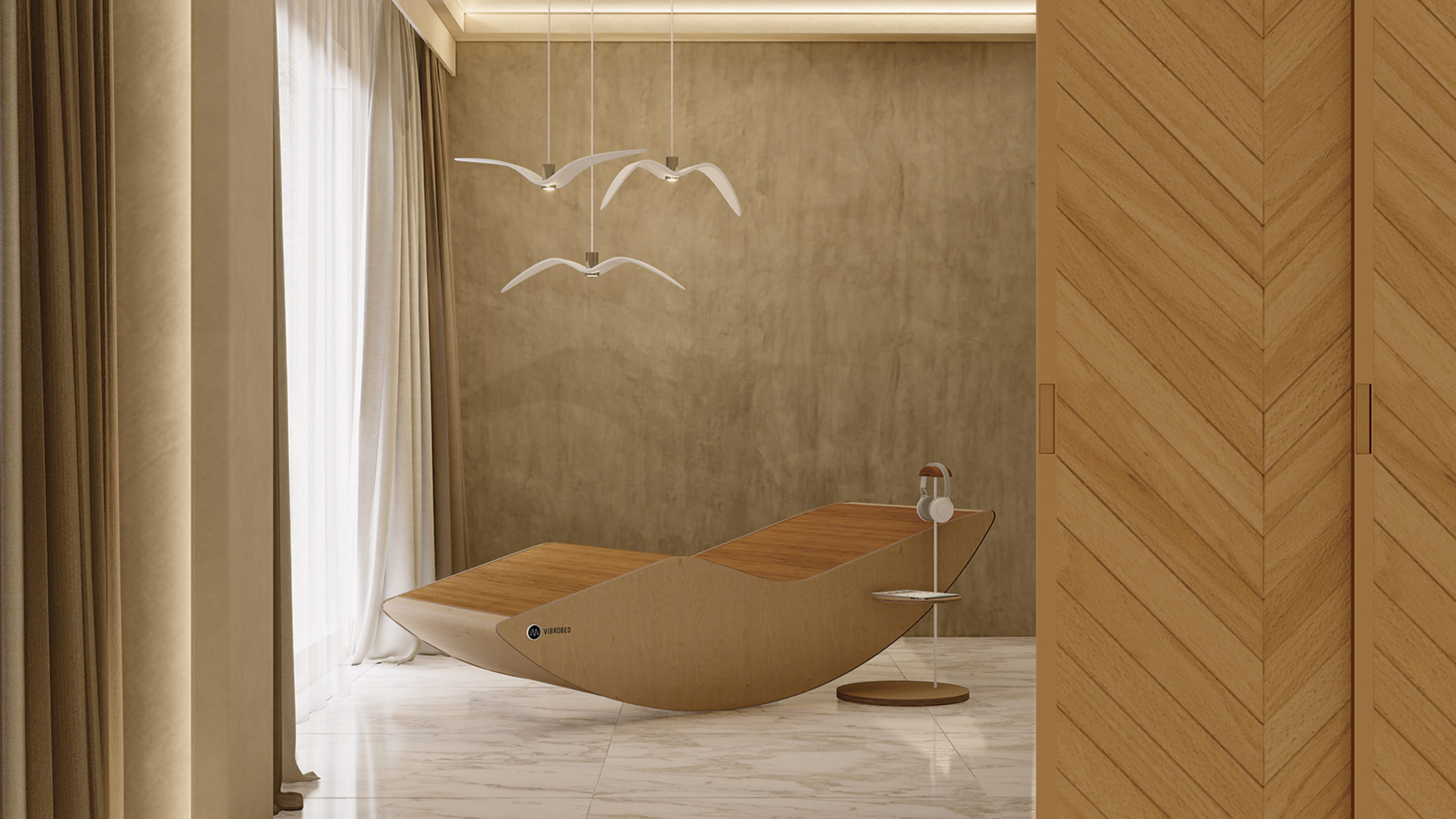 Prostřednictvím integrovaného zesilovače jsou vibrace přenášeny do 4 tělesných zón (lýtka, stehna, bedra, hrudník) dřevěné rezonanční membrány a sluchátek.